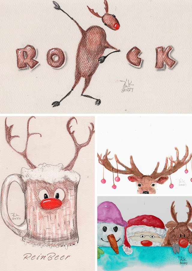 Sarja höpsähtäneistä eläimistä jatkuu muutamalla porolla ja setissä on muitakin hassuja tuttavuuksia. Kortit myydään valmiina 9 kappaleen settinä. Alkuperäiset työt tehty akvarelliväreillä.